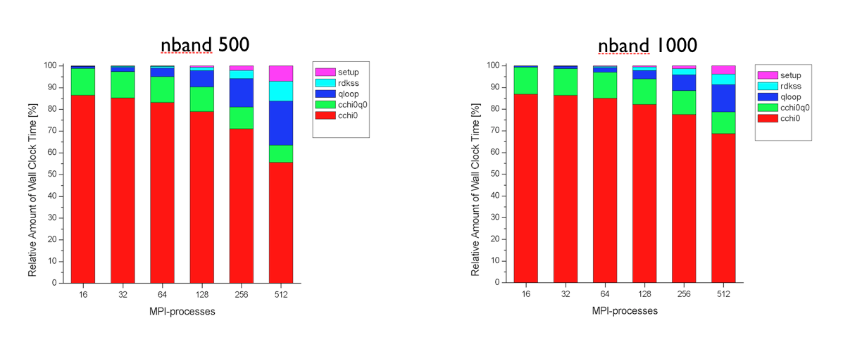To summarize: The MPI computation of the correlation part is efficient when the number of processors divides nband. Optimal scaling in the exchange part is obtained only when each node possesses the full set of occupied states.